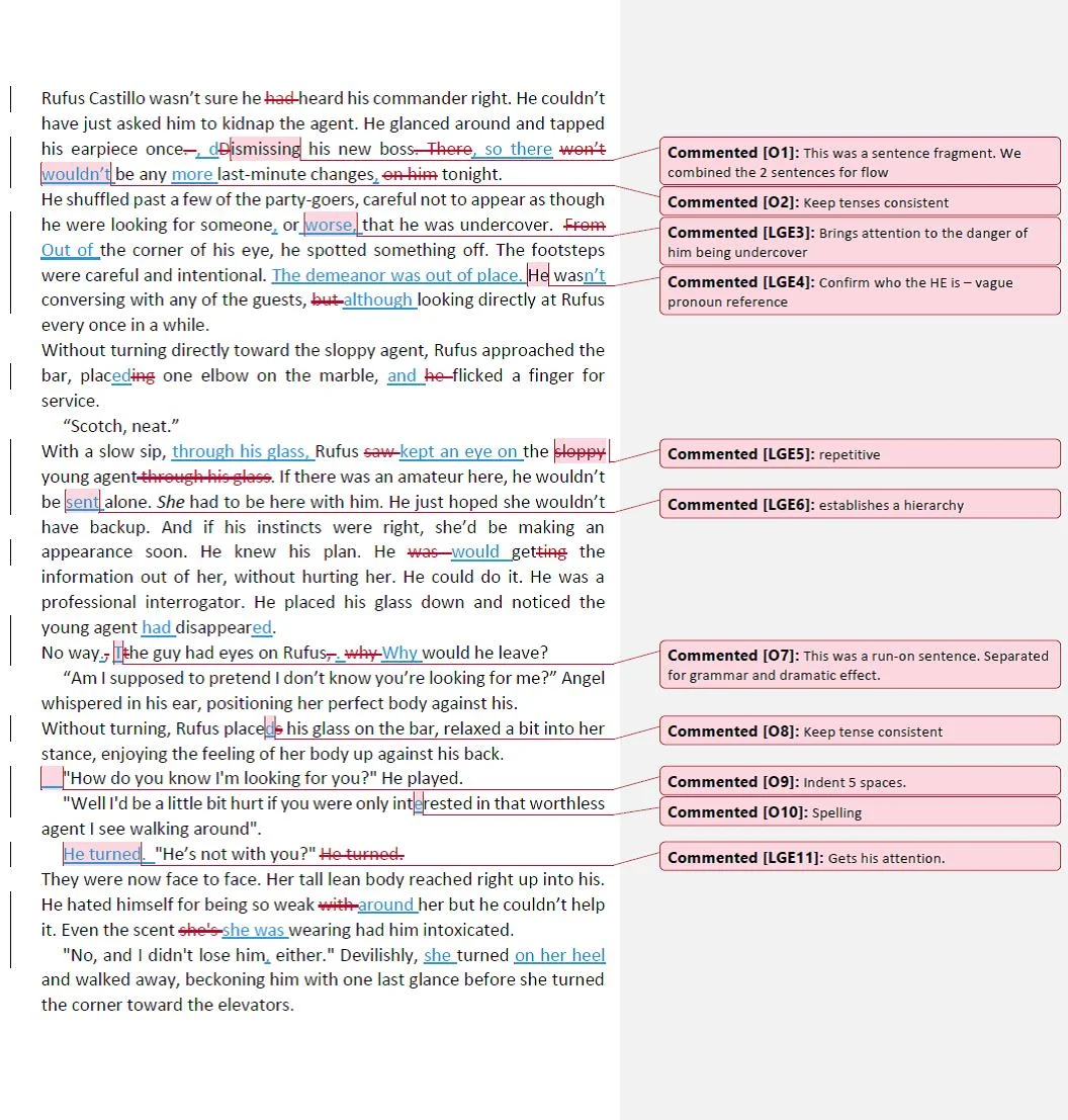 This package also includes commentary as well as suggested edits to improve or maintain plot flow and consistent tone.